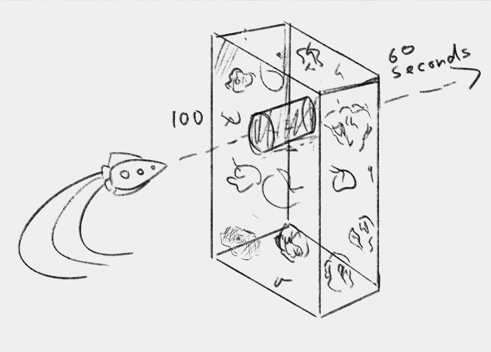- If calculated locations for an asteroid at a given point in time contain a decimal, you can round down when determining what grid location is being occupied. For example if an asteroid is at x=54.8, that is occupying grid location 54. You should, however, retain the 0.8 when applying changes that adjust for time. If the same asteroid at 54.8 was moving at 0.5 units per second, in the next second it would be at x=55.3, meaning it was now occupying grid location 55.