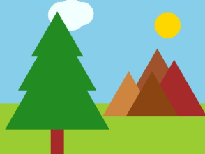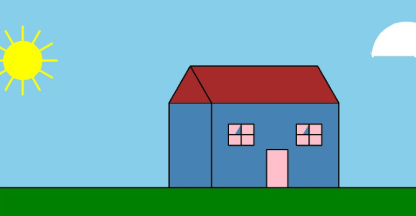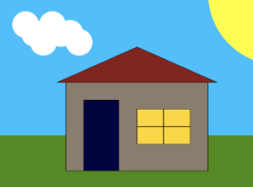 - Draw a house in a landscape scene, with a door, window, clouds and a sun.